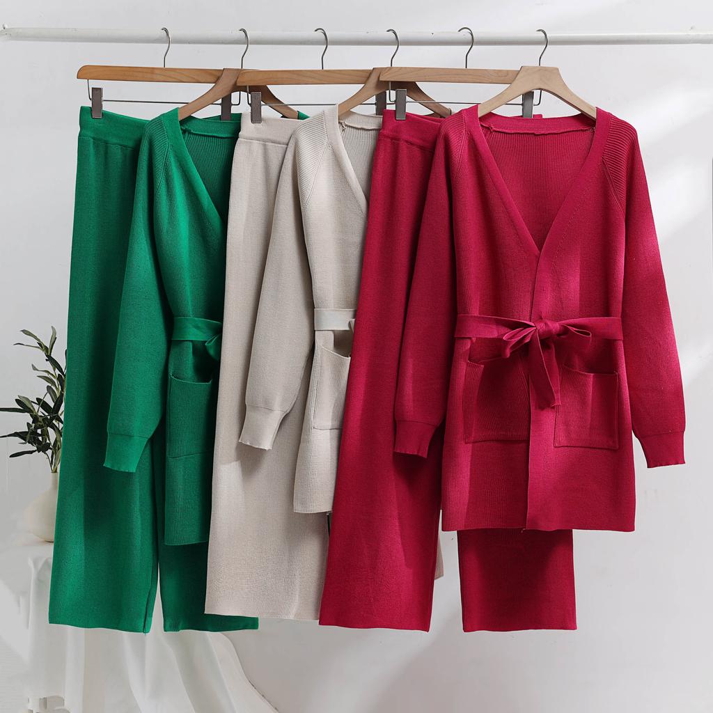 Casual Loungewear Women Set Knit Bathrobes Cardigans Pants Matching Sets Two Piece Women Knitted Suit Knitted Two Piece Women Sets