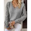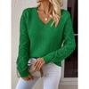 Spring and Autumn Women's Sweater Skeleton Knitted Sweater Pullover Long Sleeve Crochet Jacquard Loose V-Neck Bottom Top