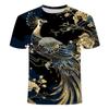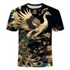 New 3D Printed Round Neck T-shirt for Summer 2024, Popular Item, Return Date, Golden Peacock Series, Men's Short Sleeved