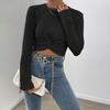 Autumn And Winter Slim Women's Fashion Solid Colour Versatile Round Neck Design Cross Knit Top Sweater