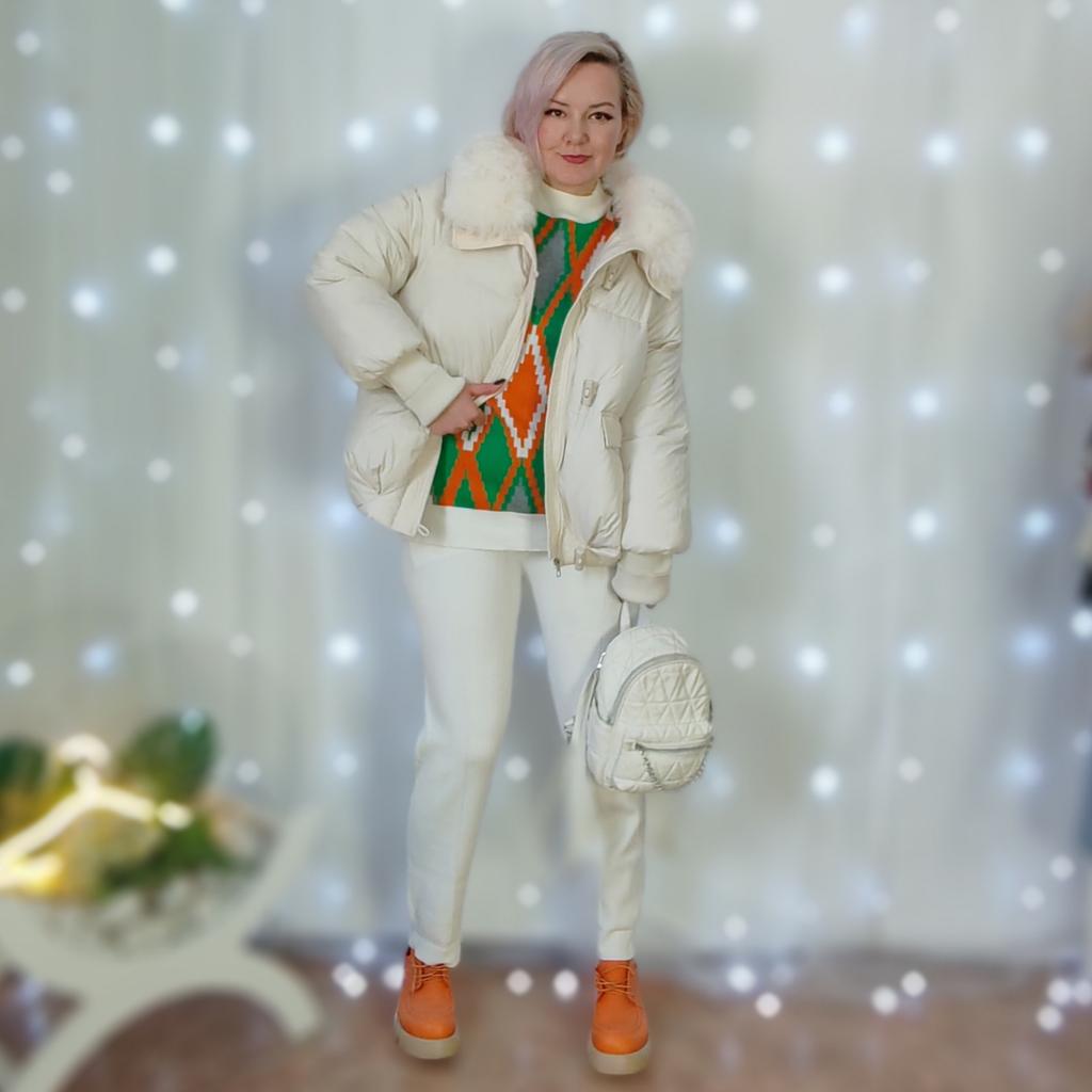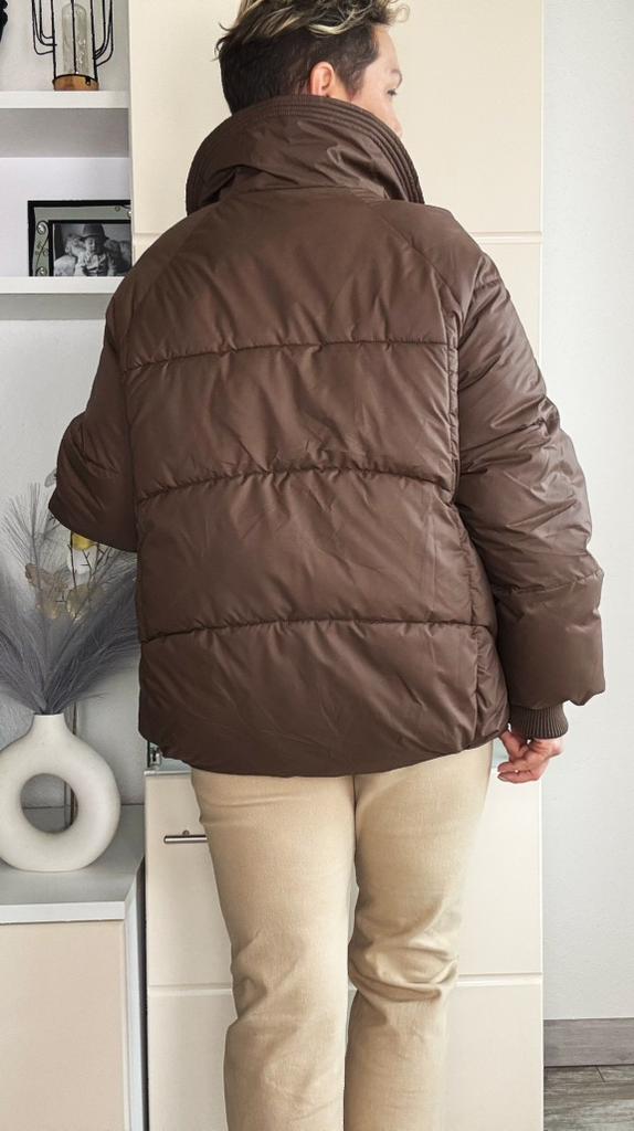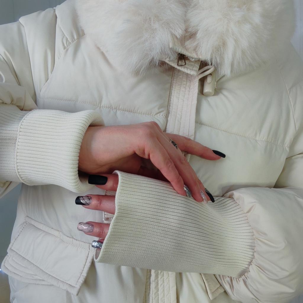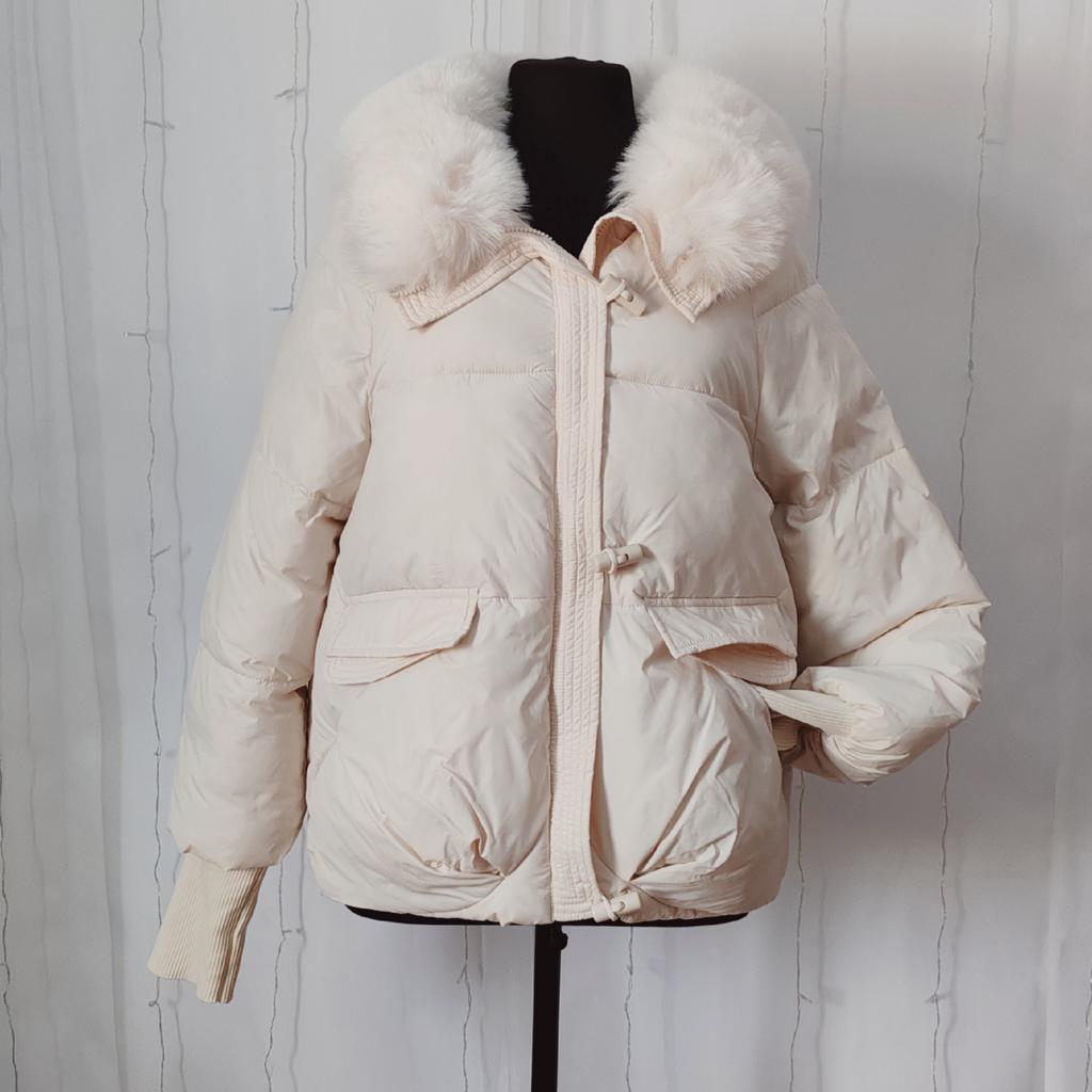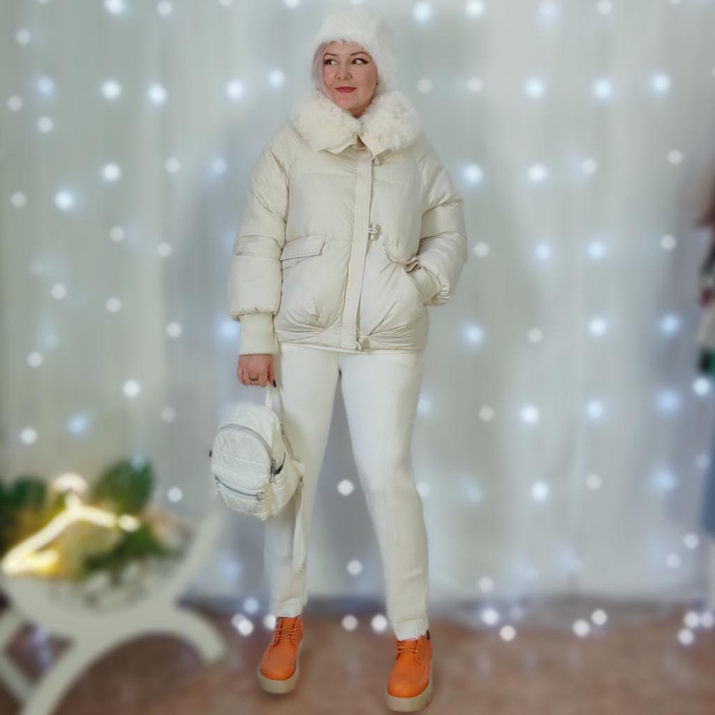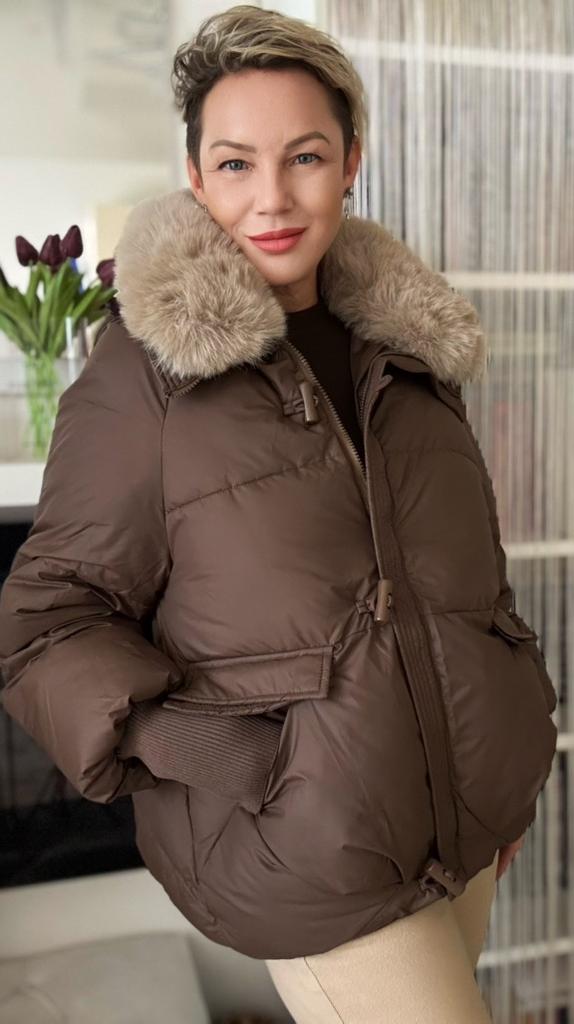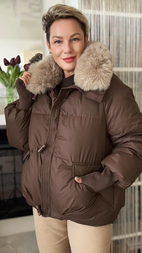 The jacket fully corresponds to the size and the seller's promotional photo. The quality is good. The filling is santepon, distributed evenly. The upper fabric is of good quality, slightly rustling, the color is very beautiful, milk chocolate. The lining is also of good quality, not cheap. The lock is plastic, painted like metal. The collar is turned up, the fur looks very decent. The cuffs on the sleeves are made of high-quality knitwear. I am very, very satisfied with the product. Thank you.🤎 PS: thanks for the gift, this is the third one from this seller, but it's very nice. I'll add: the attached collar gets very tangled and ruffled around the neck, which upsets me, and it will lose its decent appearance in a short time.🤨