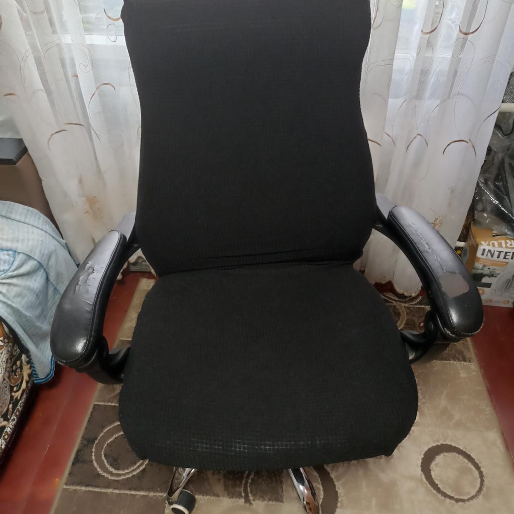 The fabric is not very stretchy. Haven't tried it on a computer chair yet. Fast delivery