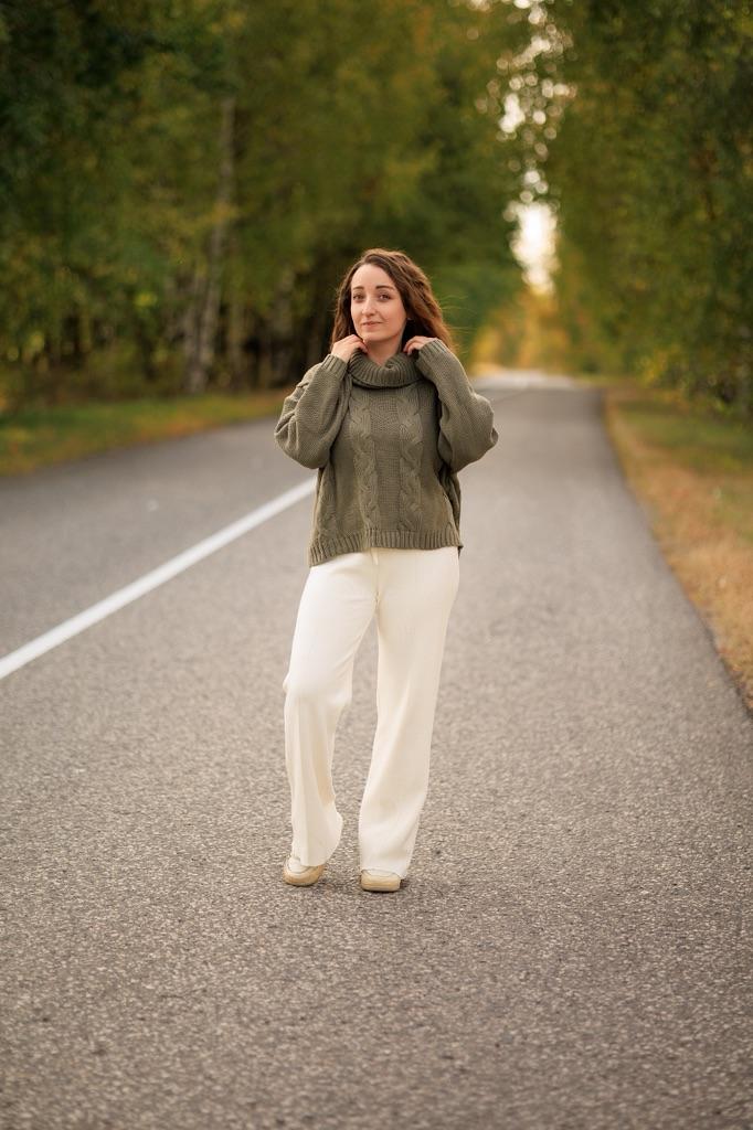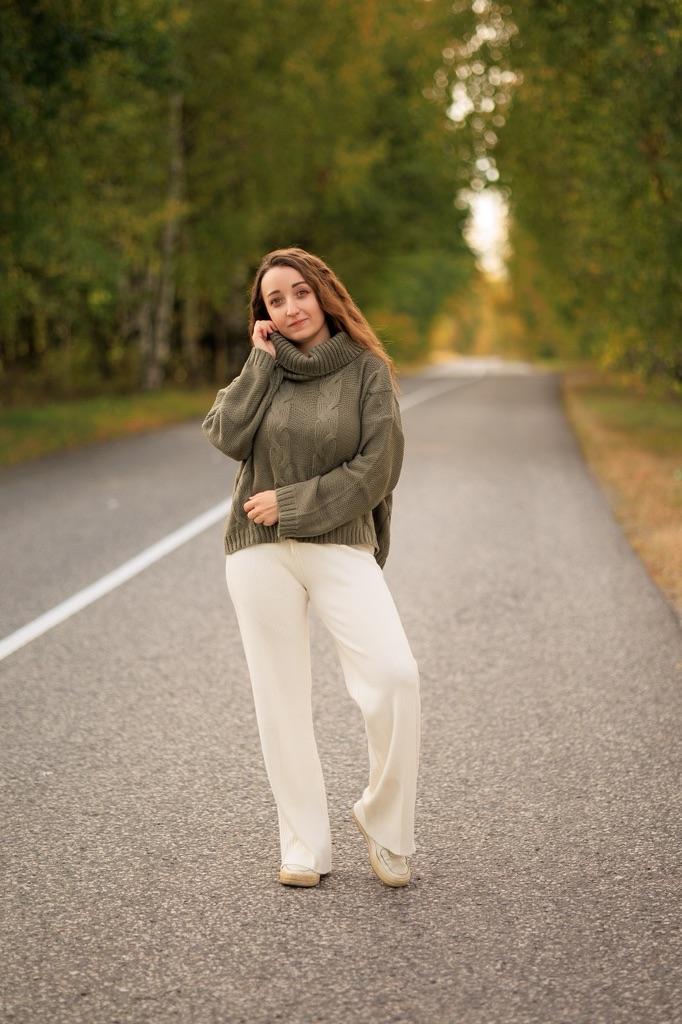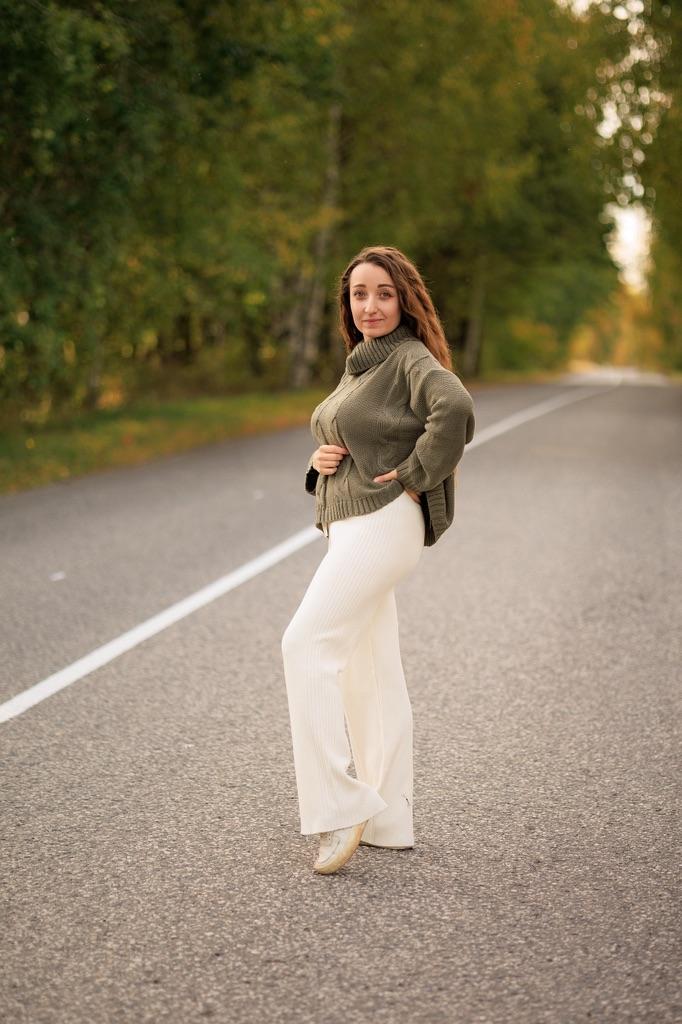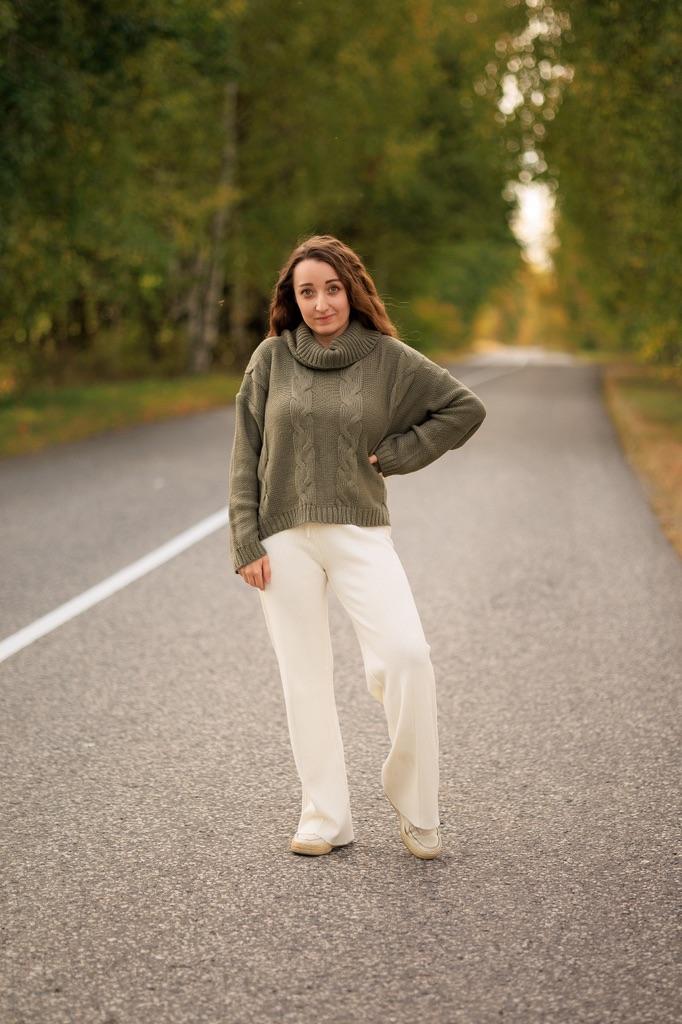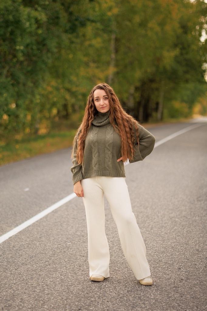 Women's Autumn and Winter Knitted Wide Leg High Waisted Pure Colour Pants