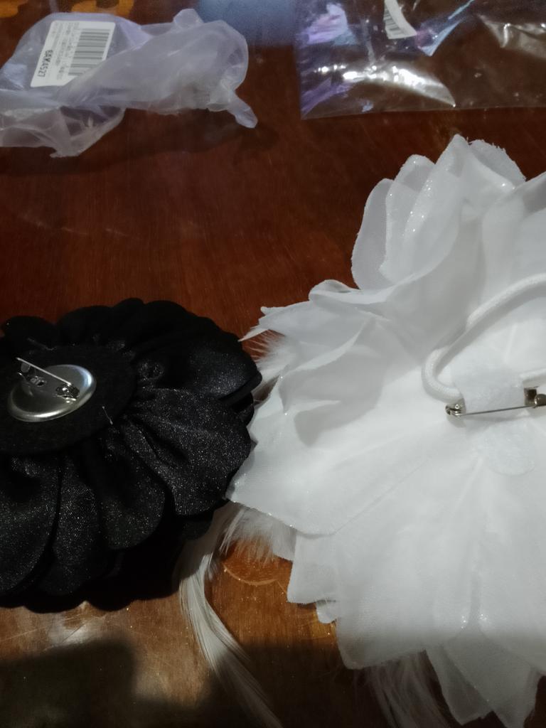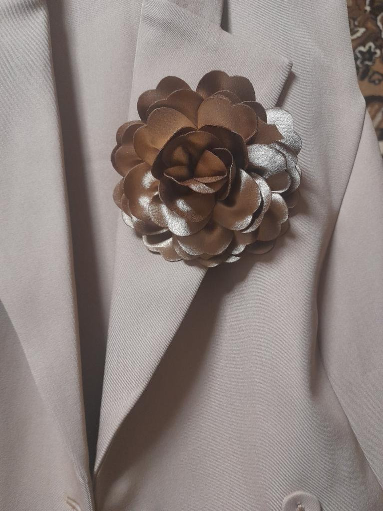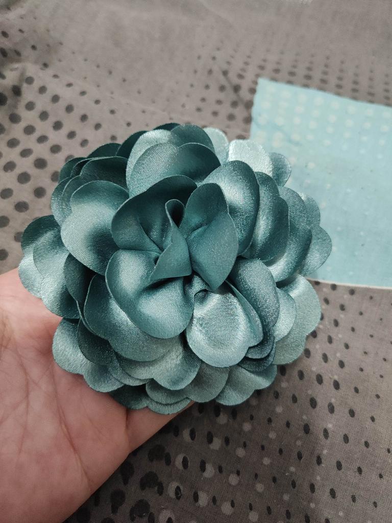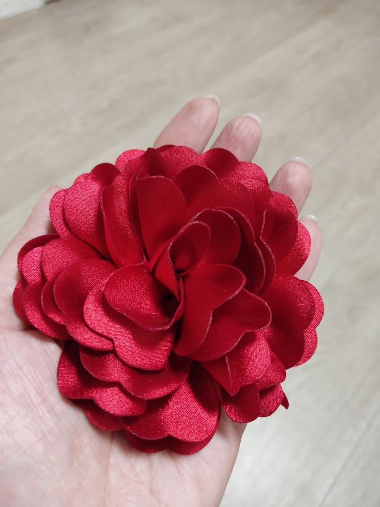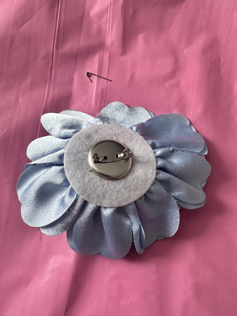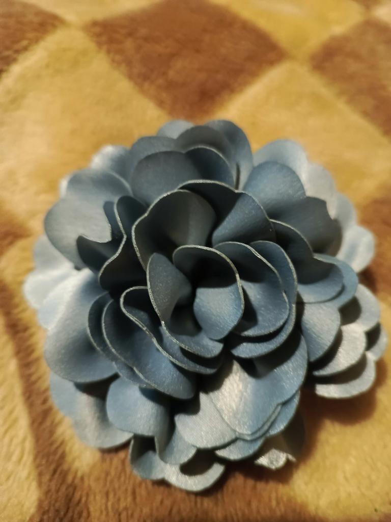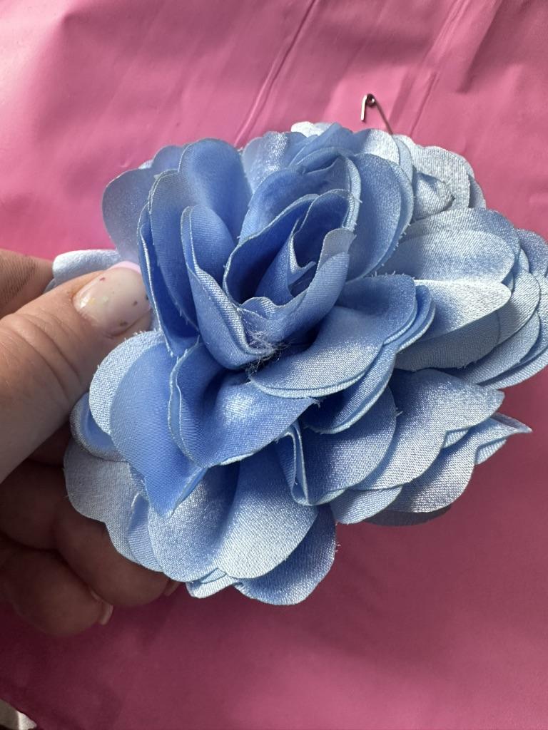 Beautiful flower. It matches my blouse. I am very pleased. There is a pin on the back.