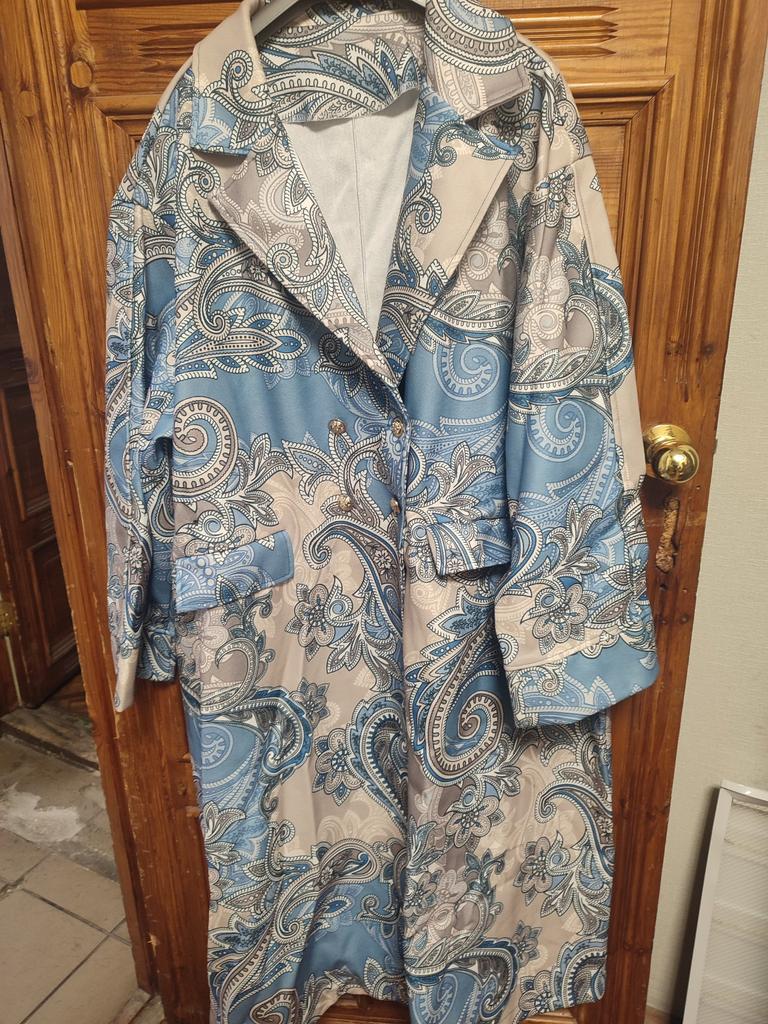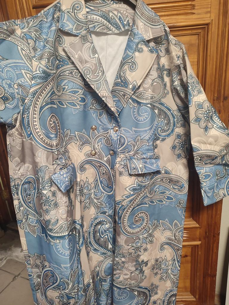 Women's Fashion Printed Pocket Long Sleeve Lapel Woolen Long Overcoat Coat