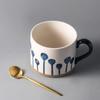 Japanese Ceramic Pattern Coffee Cup with Spoon 450ml Large Capacity Mug Simple Home Office Breakfast Milk Mug Pull Flower Latte