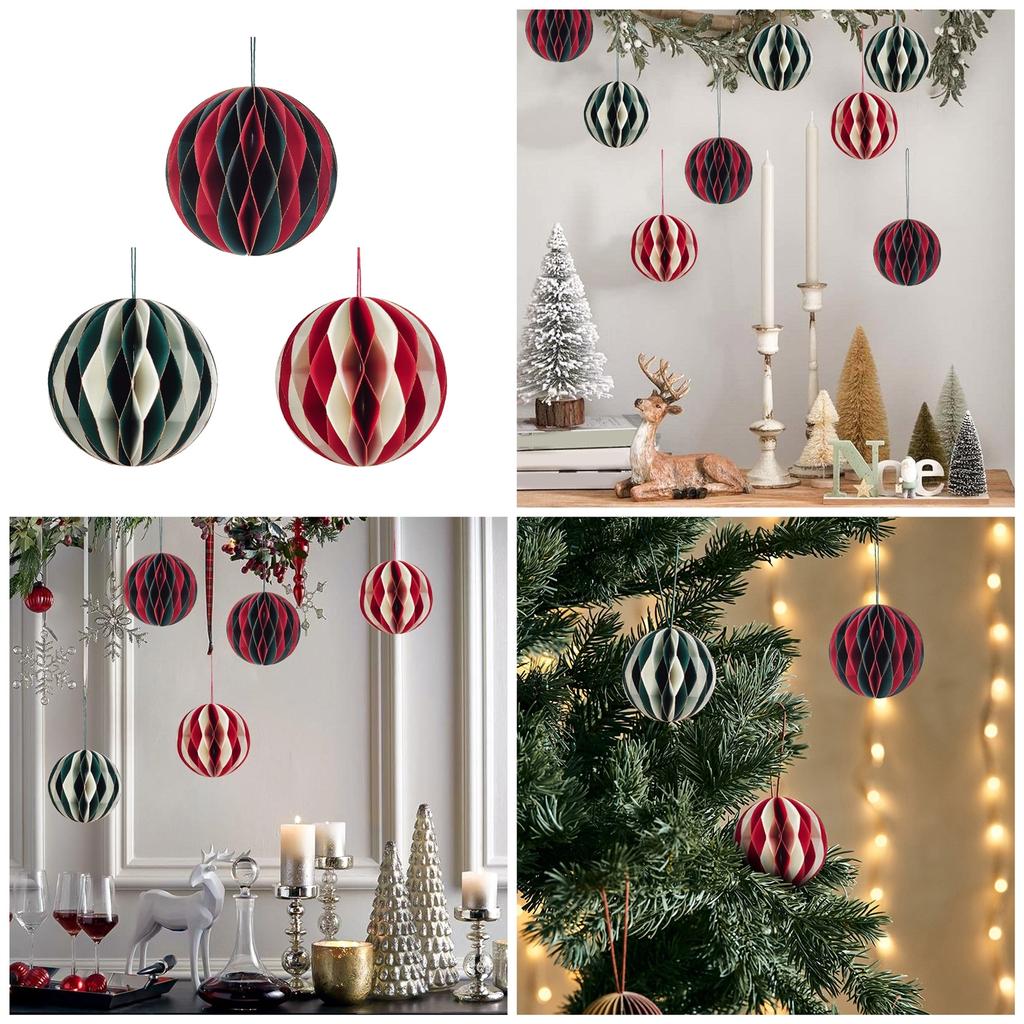 Pack Of 6 Colorful Round Honeycomb Paper Sphere Christmas Hanging Decorations for Home and Office Party Supplies