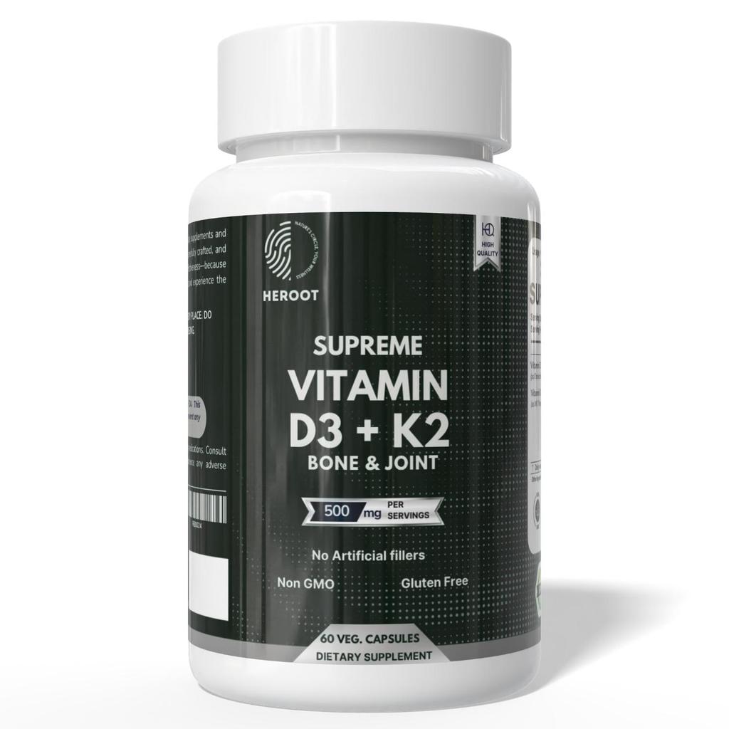 Vitamin D3 + K2 from Heroot is a powerful combination of two important vitamins that provide a synergistic effect on health. Vitamin D3 helps strengthen bones, support immunity and improve mood, and vitamin K2 helps the proper absorption of calcium, preventing its deposition in blood vessels and directing it to bones and teeth. Heroot offers the supplement in a convenient capsule form with the optimal dosage for maximum benefit.. Suitable for those who want to strengthen the skeletal system, support cardiovascular health and improve overall well-being, especially in conditions of insufficient sunlight.