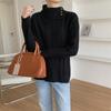 QICED Autumn and Winter Design Sense of Niche Turtleneck Sweater Women Loose Simple Style Thickened Inside The Knit Shirt Twist Top