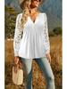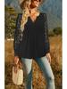Elevate your wardrobe with this stylish women's T-shirt, perfect for both spring and autumn. Crafted from high-quality polyester, this top features intricate lace sleeves that add a touch of elegance to any outfit. The long sleeves and v-neck design create a flattering silhouette, while the pleated button detailing offers a unique and sophisticated touch. Whether dressed up or down, this versatile T-shirt is a must-have addition to your seasonal collection.