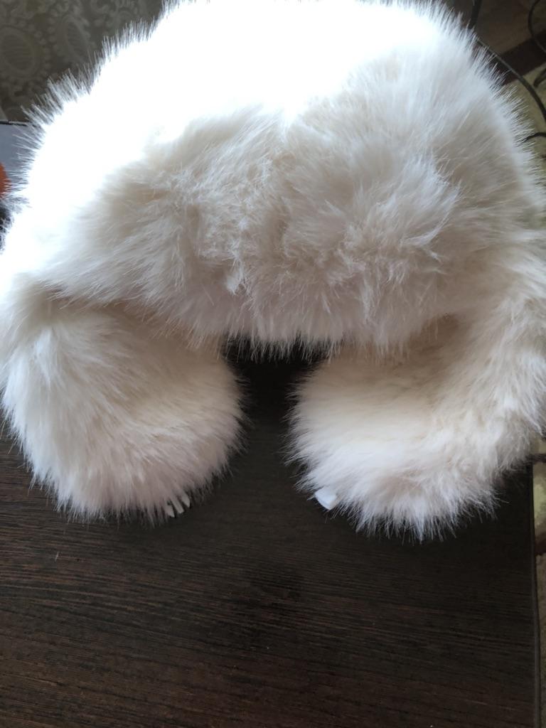 Soft, gentle, warm. Size 58-60, with a lock on the ends of the hat ears