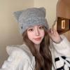New Y2k Cat Ear Beanies Warm Ear Protection Plush Knitted Hat Soft Love Embroidered Warm Hat Autumn and Winter