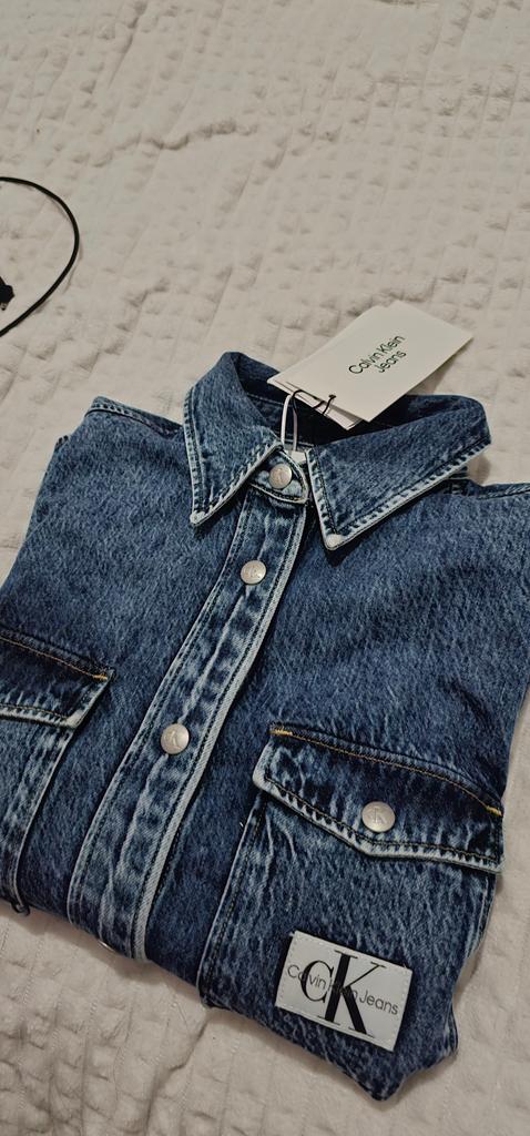 Calvin Klein Letter Patch Embroidered Pure Cotton Washed Denim Long Sleeve Shirt Women Shirts Light-Blue J223851