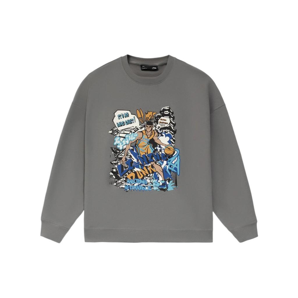 Li-Ning Pattern Printed Pullover Long Sleeve Sweatshirt Unisex Sweatshirt Gray AWDS555-4