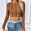 Women's Slim Short Navel Exposed Round Neck Temperament Long-sleeved Tops