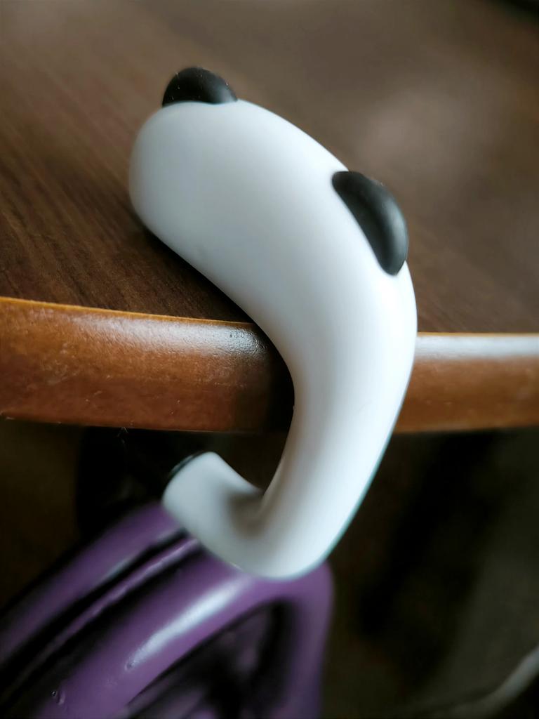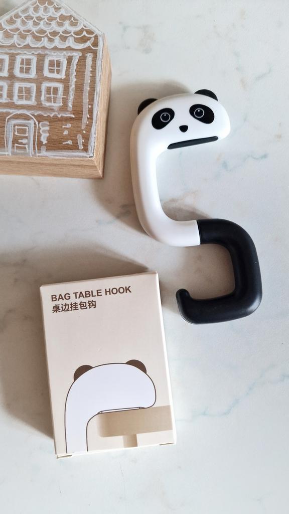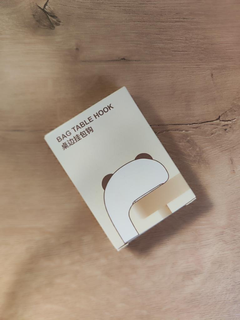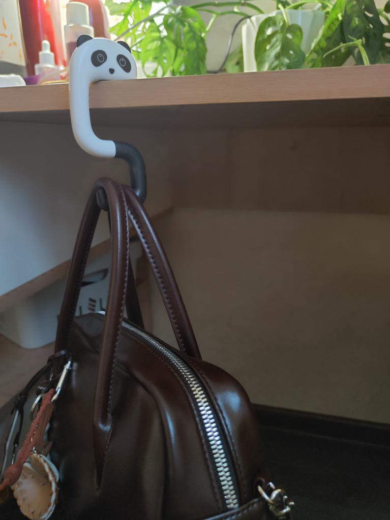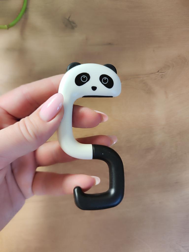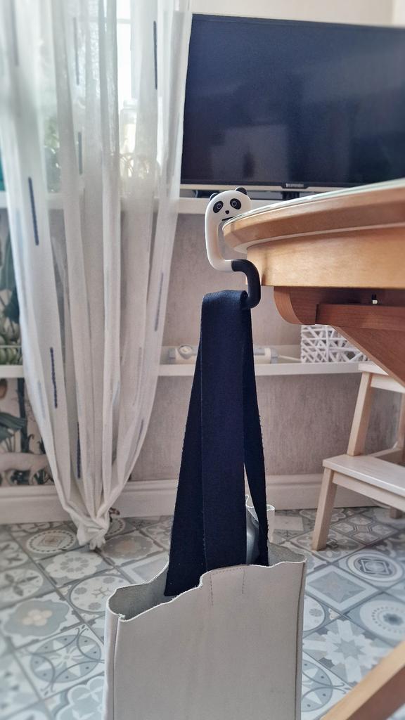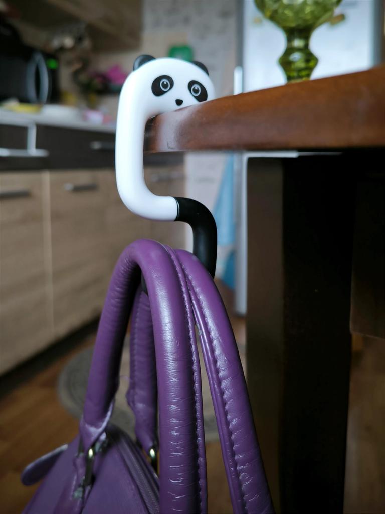 Portable Hanging Hook 🐼 A very beautiful and convenient hook that will be an excellent holder for a bag, keys, etc. both at home and will be useful when traveling, on a train, in a cafe, at school, and wherever there is a need to hang a bag Plastic quality is excellent No foreign smell Beautiful very cute design Exact measurements when folded 7.3*5*1.2 cm Suitable for both thin and wide tabletops, shelves, but up to a maximum of 3.3 cm. It has a soft silicone insert on top, which provides grip and prevents scratching of the surface (photo #6) Excellent, convenient, useful. Very happy with the purchase. A solid A and my strong recommendation 🤗