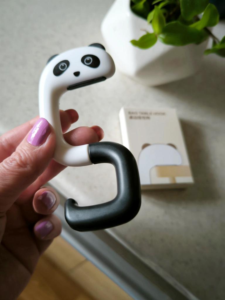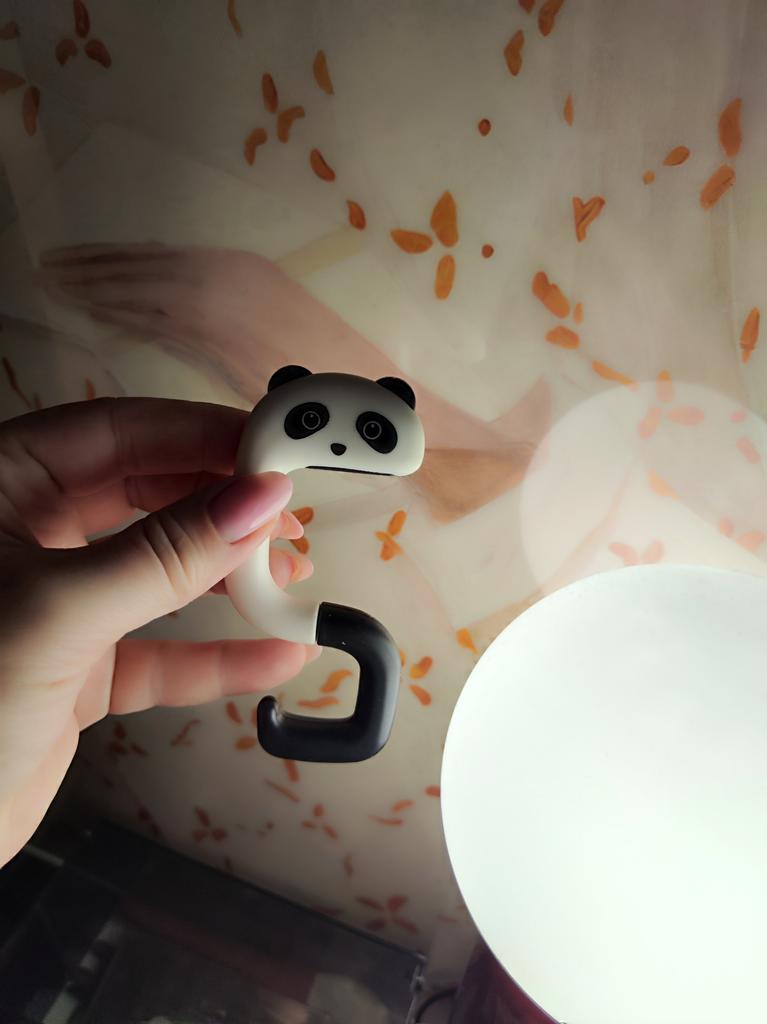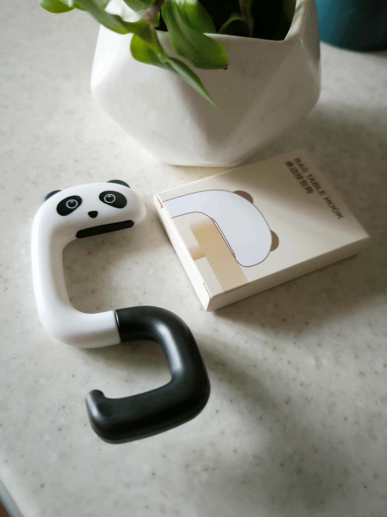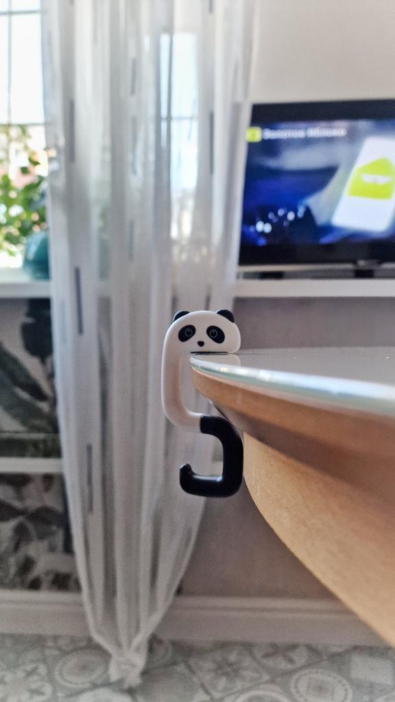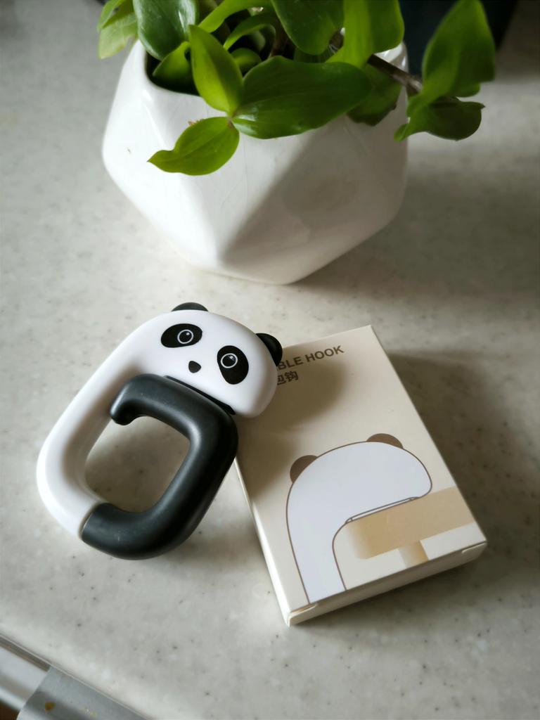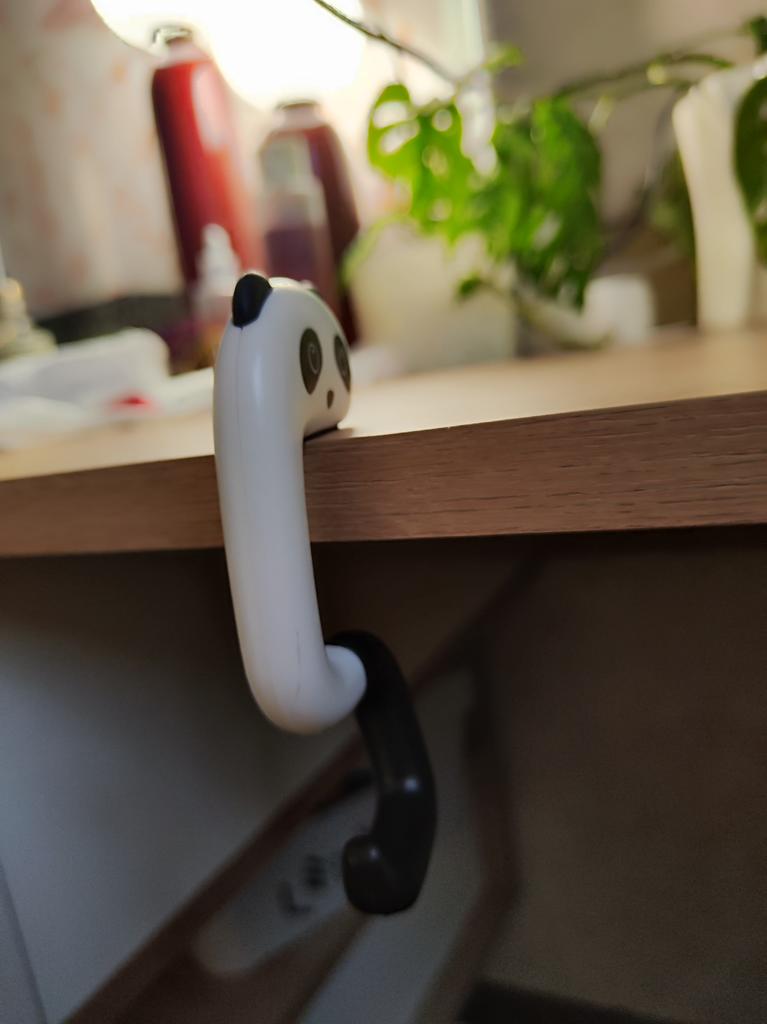 Portable Hanging Hook 🐼 A very beautiful and convenient hook that will be an excellent holder for a bag, keys, etc. both at home and will be useful when traveling, on a train, in a cafe, at school, and wherever there is a need to hang a bag Plastic quality is excellent No foreign smell Beautiful very cute design Exact measurements when folded 7.3*5*1.2 cm Suitable for both thin and wide tabletops, shelves, but up to a maximum of 3.3 cm. It has a soft silicone insert on top, which provides grip and prevents scratching of the surface (photo #6) Excellent, convenient, useful. Very happy with the purchase. A solid A and my strong recommendation 🤗