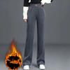Autumn Winter Women's Korean Fashion Elegant Fleece Thick Warm Pants Office Lady Solid Slim Straight Trousers Casual Pantalones