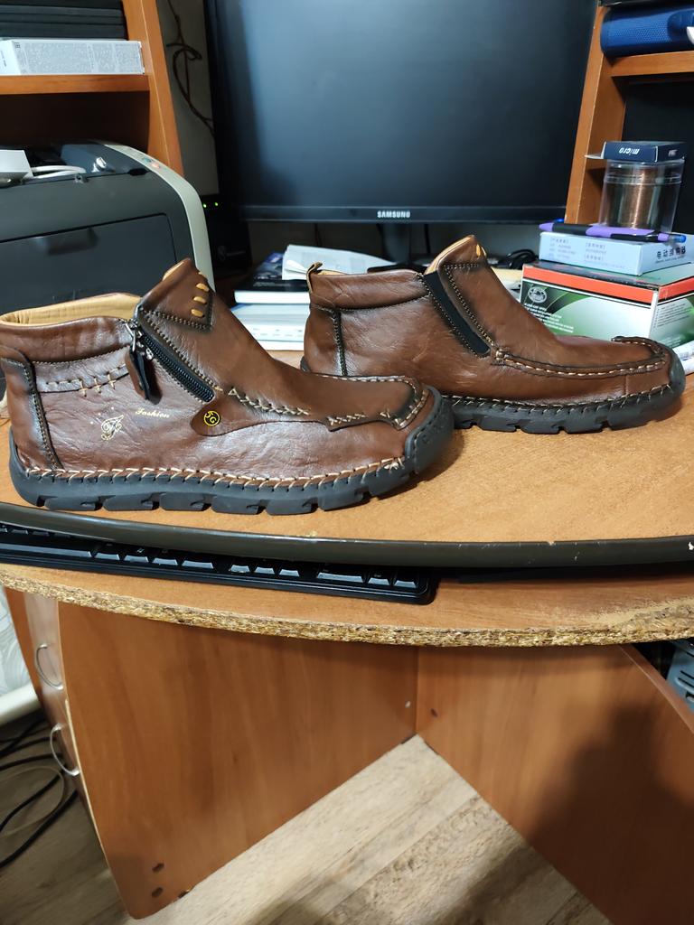 Men’s Boots High Top Leather Boots Plush Outdoor Large Size Autumn/winter Plus Velvet Warm Handmade Ankle Boots