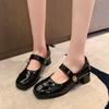 Fashion 2024 New Women's High Heels Fashionable Elegant Shallow Mouth Versatile Solid Color Buckle Thick Heel Women's Mary Jane Shoes