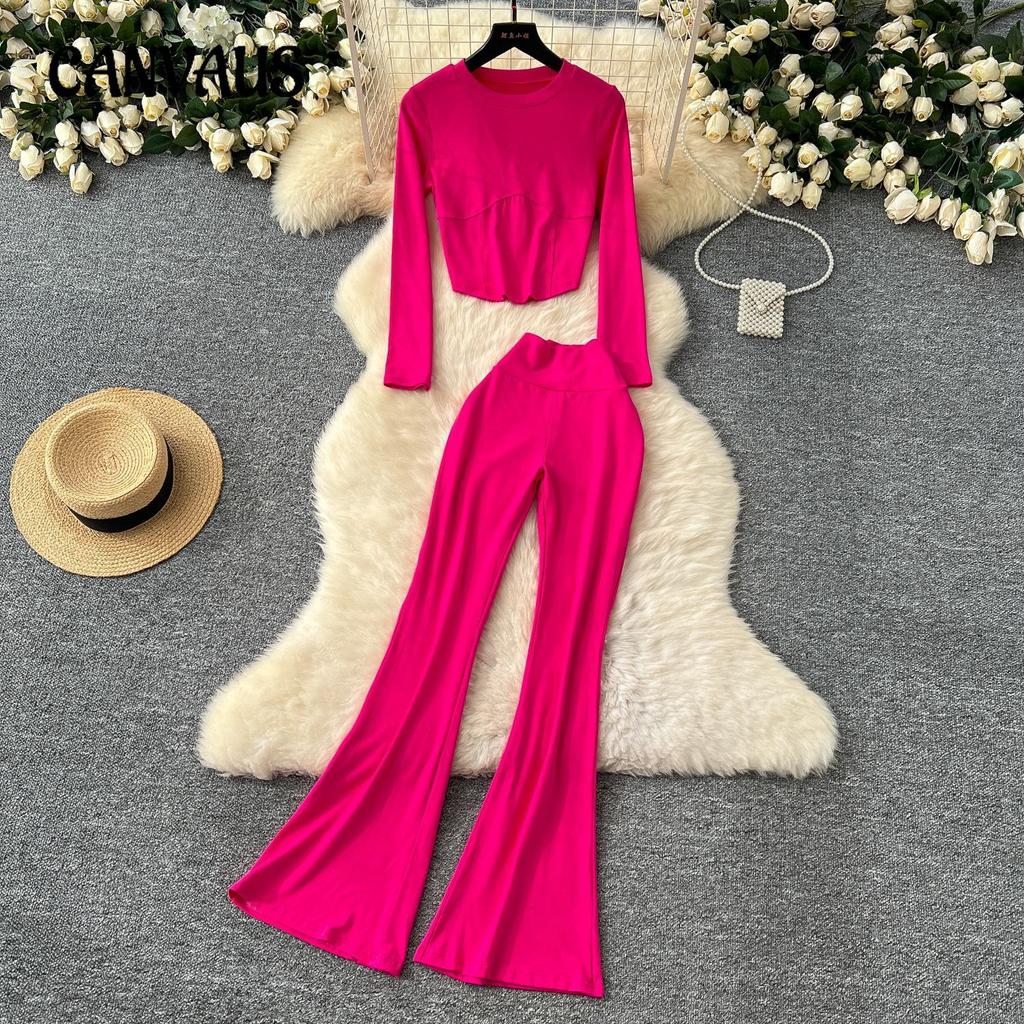 Spice Girls Suit Women's Casual Sportswear Slim Round Neck Long Sleeve T-Shirt High Waist Slim Micro Pants Suit