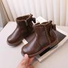 2024 Children Leather Plush Boots for Girls Winter New Fashion Korean Style Soft Bottom Anti-slippery Versatile Chic Zip Shoes