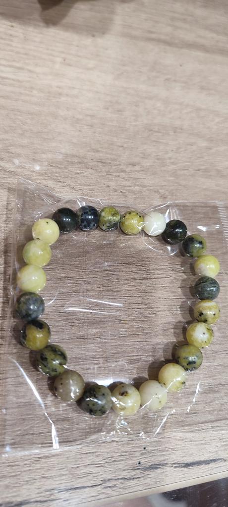A wonderful bracelet made of natural nephrite, heavy and cold. It sits loosely on my narrow wrist.. The stones are beautiful.