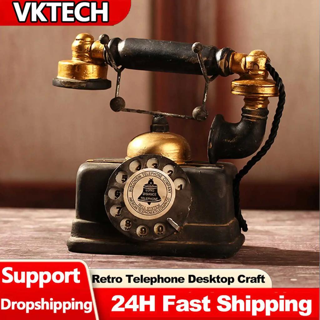 Antique Vintage Desktop Ornament Telephone Model Craft Bar Home Decoration Gift Elaborate Manufacture Prolonged Durable