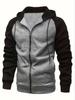 New Men's Zip-Up Color Block Hoodie with Casual Stylish & Durable Fall/Winter Top Raglan Sleeves Hoodies Sweatshirt Male