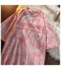 Experience vibrant summer style with these eye-catching short-sleeve tops, perfect for women and couples. Crafted from luxurious milk silk and artificial silk material, these tops offer a soft and comfortable fit. Featuring a round neckline and short sleeves, they are ideal for staying cool during warm days. The unique tie-dye pattern is complemented by embroidered letter decorations, adding a touch of personal flair to your wardrobe. Perfect for casual outings, these tops are a stylish addition to any summer wardrobe.