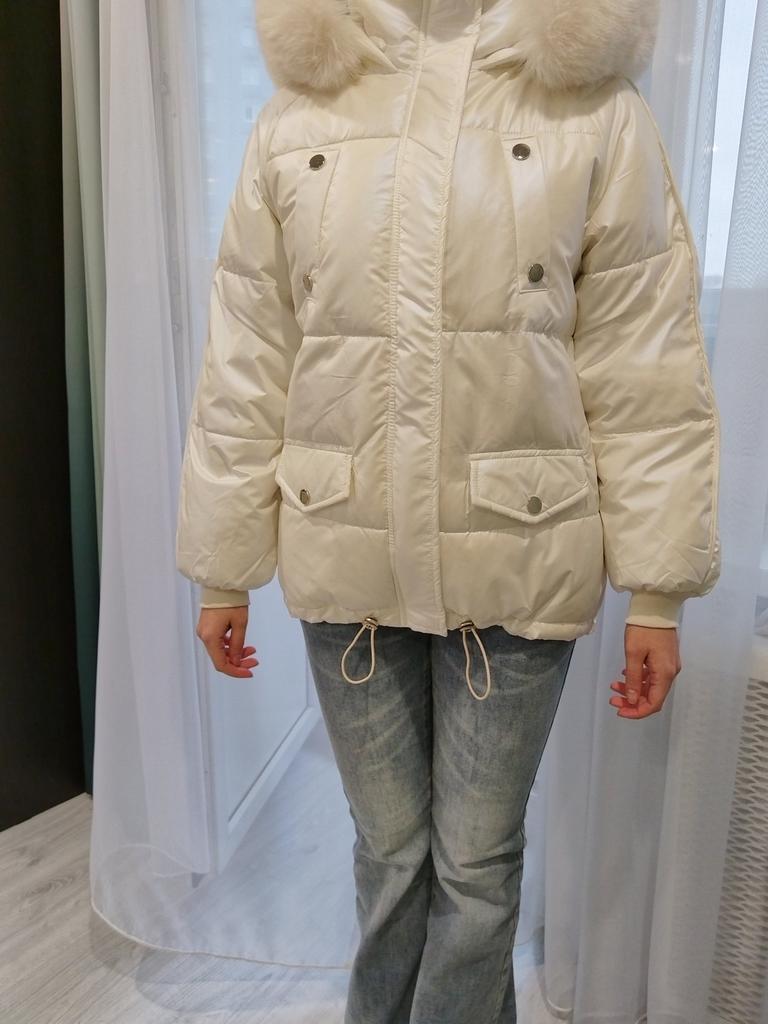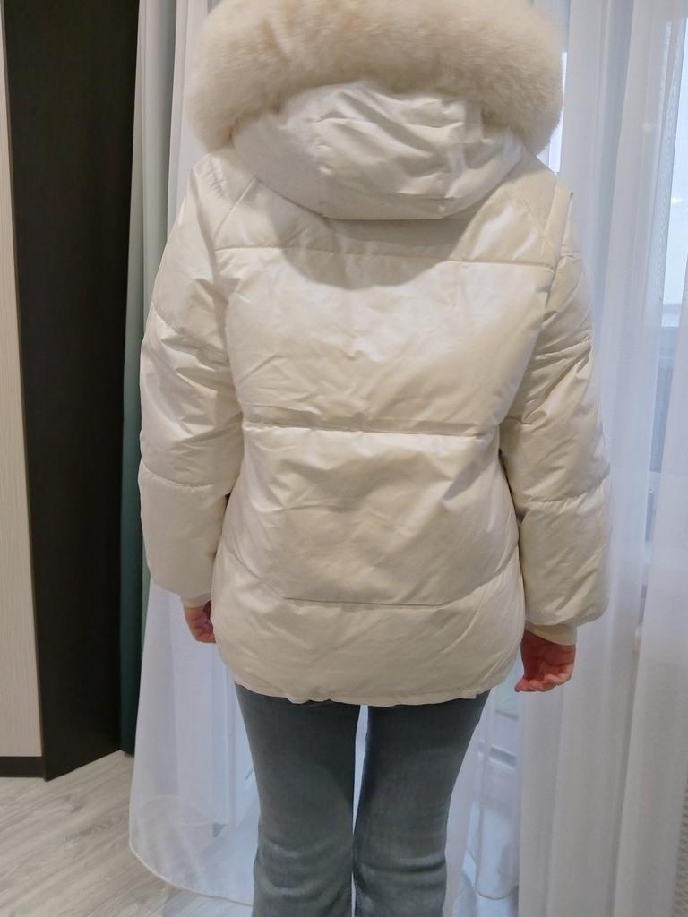 Introducing the latest trend in outerwear, this women's jacket features a shiny white exterior crafted from durable polyester material. Designed with medium thickness for optimal warmth, it is filled with high-quality duck down, ensuring you stay cozy in chilly weather. The jacket sports a stylish long sleeve design and a tailor neckline that perfectly complements its loose fit, offering both comfort and freedom of movement. Adding a touch of elegance, the jacket is adorned with a fur collar made from soft polyester material. Its wash-free convenience and 2024 style makes this jacket a must-have for the fashion-forward woman seeking both functionality and style in her winter wardrobe.