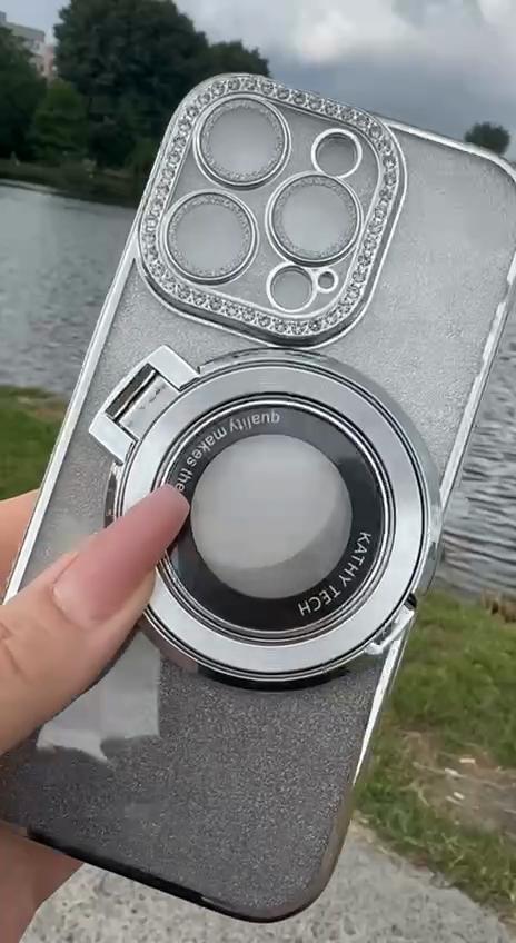 Magnetic Rhinestone Bracket for iPhone 13/14 Pro Max with Electroplated Glitter Lens Film