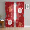 Cartoon Christmas Santa Claus Shiny Red Pink Tulle Window Curtains Living Room Bedroom Sheer Home Decor Chiffon Voile Kitchen2Pc
