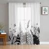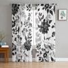 Black And White Flowers Sheer Curtains for Bedroom Living Room Decoration Window Curtain for Kitchen Tulle Voile Organza Drapes