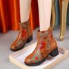 Retro Women's Ankle Boots 2024 Winter High Quality Pu Leather Ethnic Print Ladies Booties Comforta Mid Heel Round Toe Mom Shoes