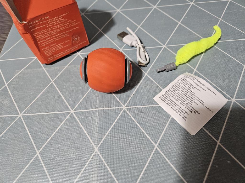 Very loud toy, came charged, the cat is not interested, is afraid of it.