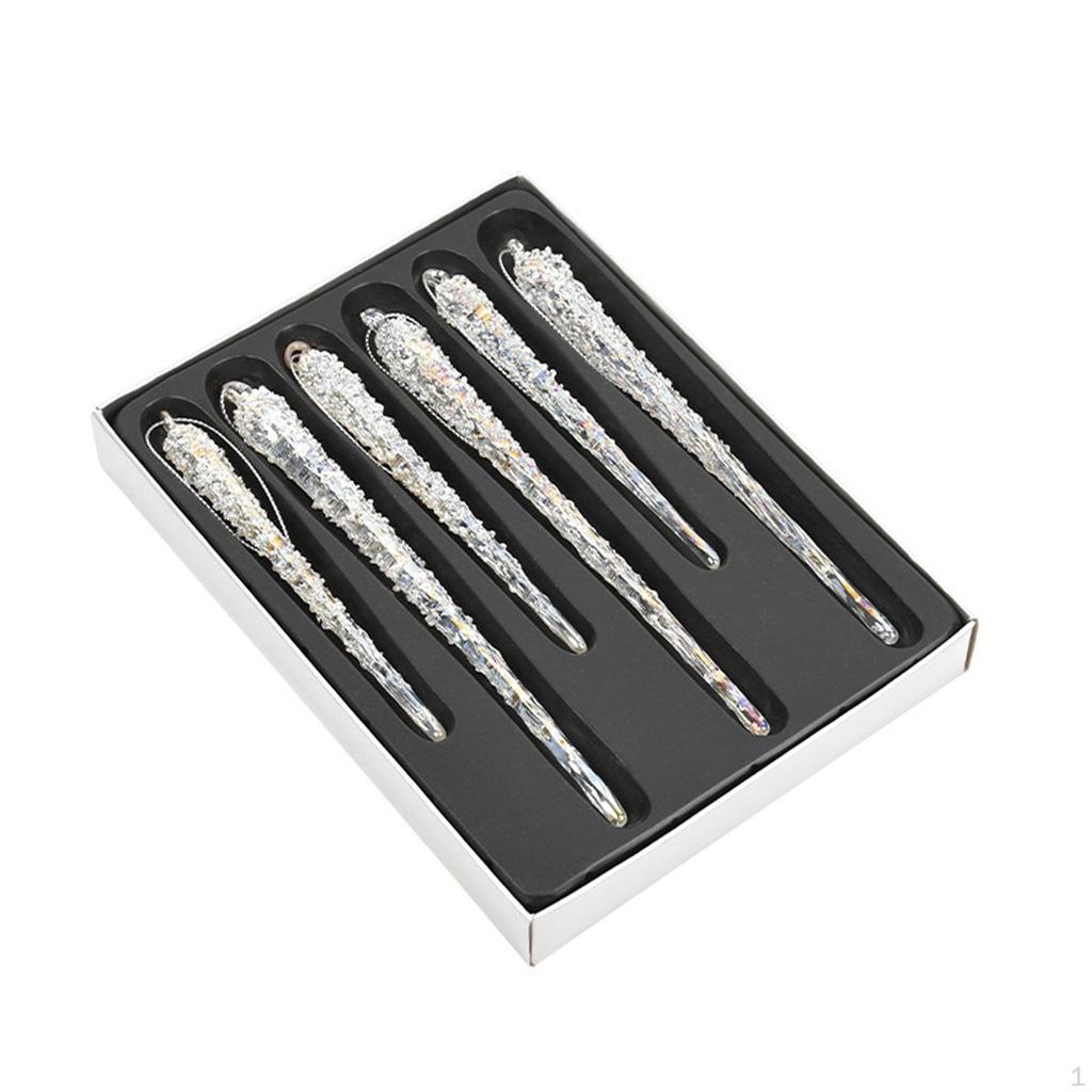 6x Glass Icicle Ornament Charm Pendant Clear DIY Craft Christmas Tree Decorations for Festival