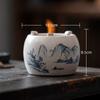 Tea Boiling Set In A Stove Candle Alcohol Stove Tea Warmer Vintage Rough Ceramic Rattan Teapot