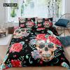 Sugar Skull Lady Duvet Cover King Queen Size Day of Dead Theme Bedding Set Retro Gothic Skeleton Red Rose Soft Quilt Cover White