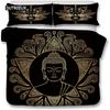 Mandala Buddha Duvet Cover Set,Bohemian Bedding Set Golden Black Lotus Flowers Print Luxury Microfiber Polyester Comforter Cover
