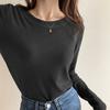 Fashion Long Sleeve Slim Fit White T-shirt Women Round Neck Spring and Autumn Simple Base T Shirt Ladies Elegant Solid Casual Pullover Tee Tops 25571
