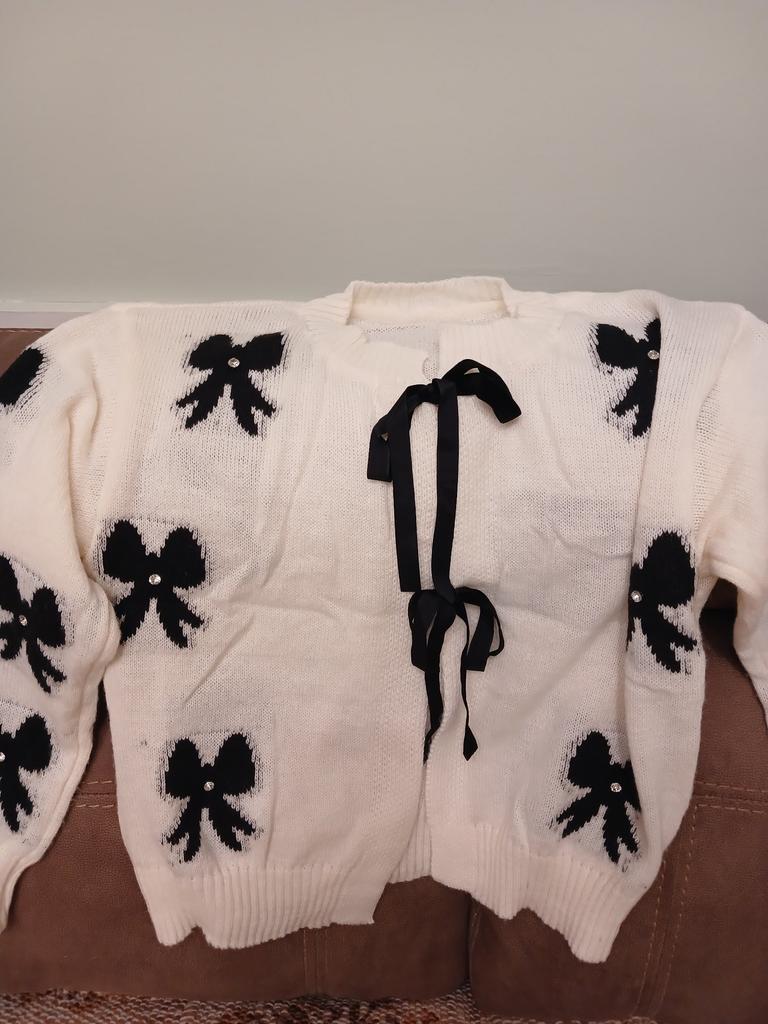 Bow Lace Up Sweater Knitted Coat Women Loose Casual Commute Short Cardigan Autumn Streetwear Round Neck Knitwear Tops