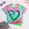 Girl Clothes Child T-Shirt Short Sleeve Heart Print Tie Dye Girl T-Shirt Top Casual Tees Kids Summer Clothes Children's Clothing