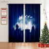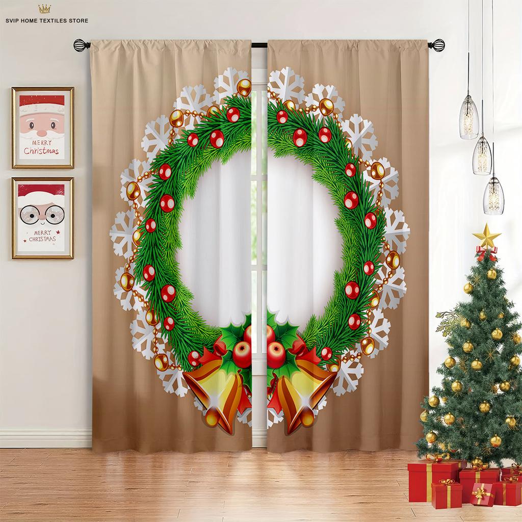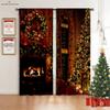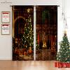 2 Pieces Christmas Decoration Curtains Christmas Tree Fireplace 3D Printing Curtains Suitable for Bedroom Dining Room New Year