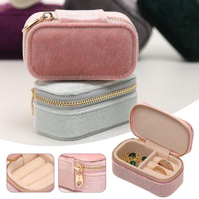 1Pcs Mini Velvet Ring Box Jewelry Storage Case Single Layer Earrings Necklace Organizer Candy Color Zipper Bag Travel Portable