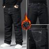 28-48 Size Autumn And Winter New Men'S Plus Velvet Thick Oversized Jeans With Increased Elasticity Loose Straight Leg Pants