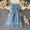 GMXIA Women's Fashion Summer Spring Floral Print Short Sleeve One Shoulder High Waist Casual Dresses