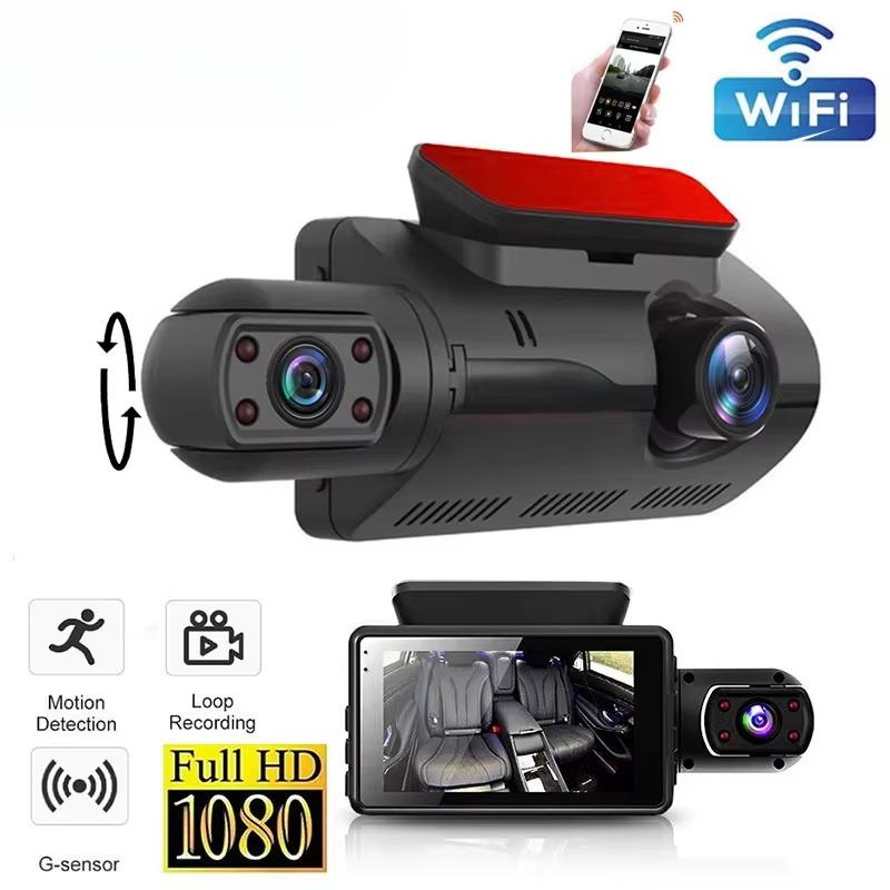 *2. The dashboard camera employs two cameras, one of which can be rotated 360-degree toward the front and rear of the car to monitor all directions.