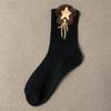 Women's Autumn/Winter Plush Bear & Flower Trendy Mid-Length Socks - Coffee/Black