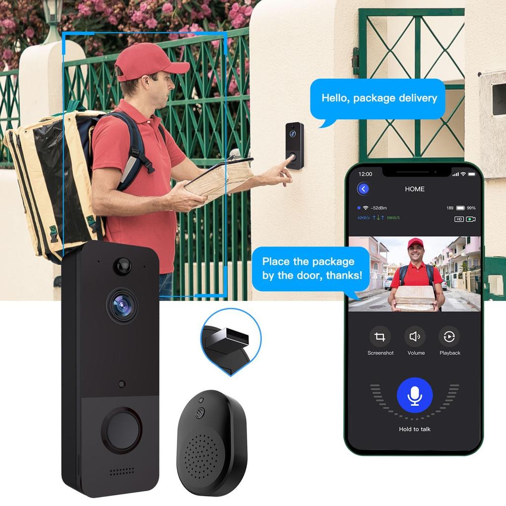 T8 Doorbell Camera Wireless, Smart Wireless Doorbell WiFi Hd Camera Video Phone Intercom Smart Security Intercom